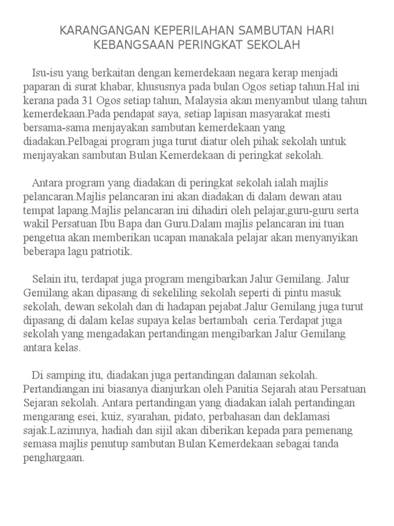 Contoh Karangan Sambutan Hari Kemerdekaan Di Sekolah Saya Peatix